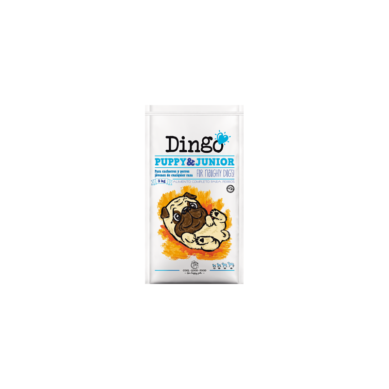 Alimento completo, natural y equilibrado, de fácil digestión para cachorros y perros jóvenes. Dingo Puppy & Junior aporta los nutrientes adecuados para un óptimo crecimiento, hace que nuestro cachorro tenga músculos y huesos sanos, a la vez que refuerza su sistema inmunitario.