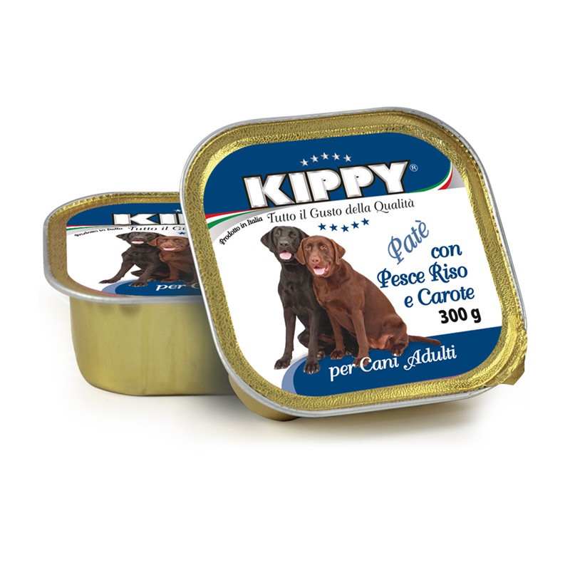 Kippy Pescado Arroz y Zanahoria especial para perros de todas las edades. Fabricado con materias primas de primera calidad, contiene Pescado fresco que proporciona una gran cantidad de Omega 3 aportando brillo y vitalidad al pelo y piel de tu mascota, las verduras como la zanahoria aportan vitaminas y fitonutrientes a la dieta. Un alimento altamente digerible y palatable que garantiza la aceptación de la mascota por su sabor y su textura suave y cremosa. Kippy supervisa minuciosamente todo el proceso de fabricado desde la selección de sus ingredientes hasta el relleno y envasado del producto garantizando un producto de primera calidad. Kippy pescado arroz y zanahoria es un alimento sano y equilibrado.