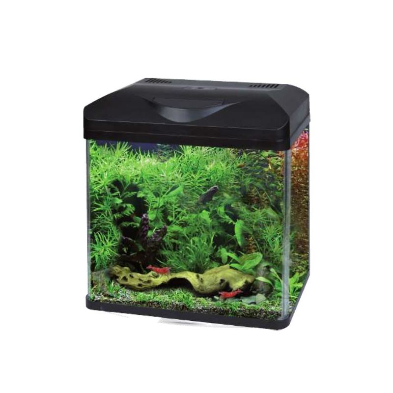 El diseño casi cúbico con cristal de 6mm, convierte este nano acuario en un elegante micro-hábitat que tanto puede usarse para peces de "agua fría" como para peces "tropicales" (en ese caso sería necesario adquirir a parte un calentador).